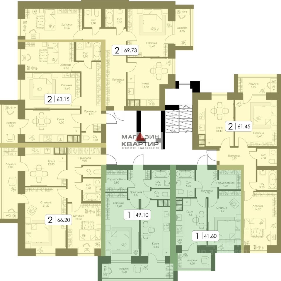 2-ком. квартира, 68,7 м² ЖК «Океан»