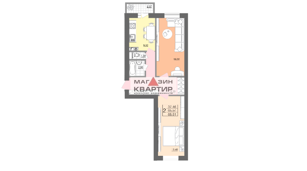 Площадь: 68.1 / 34.26 / 10.79