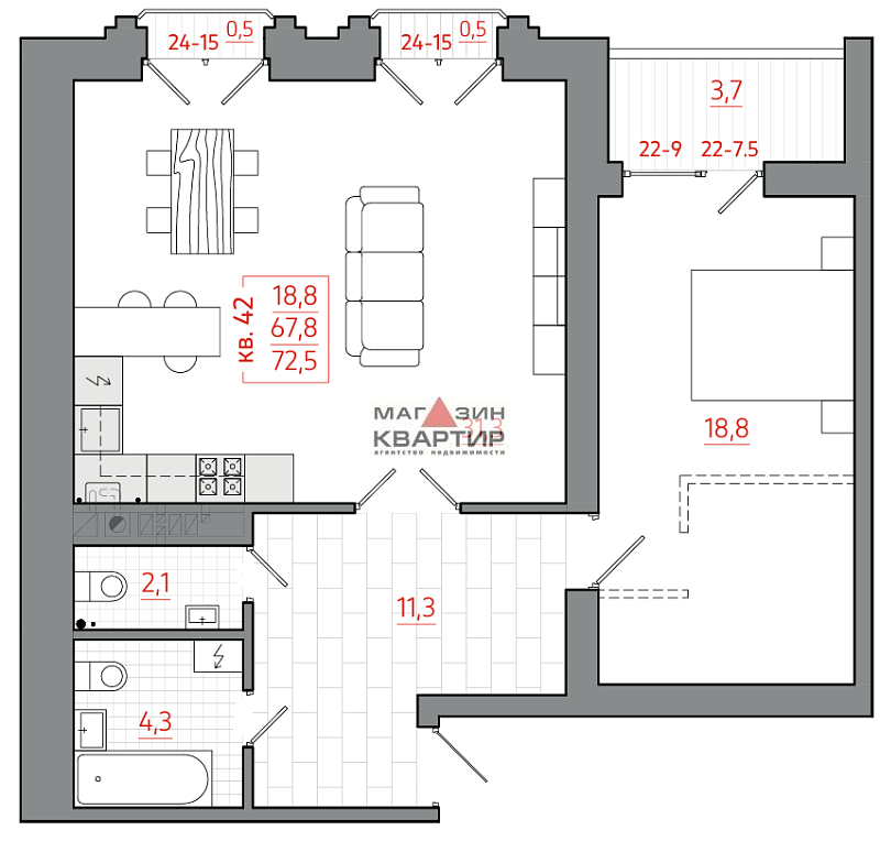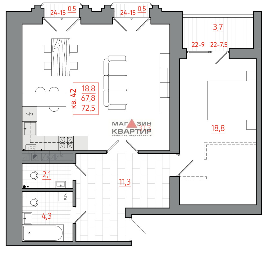 Продается однокомнатная квартира в новостройке, площадью 72,5м².